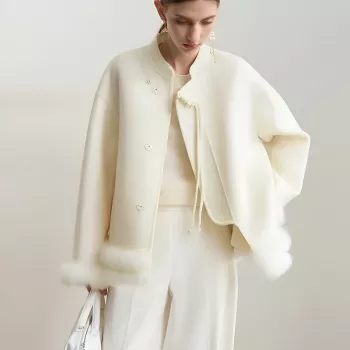 Elegant Winter Pearl Buckle Wool Coat with Fox Hair Accents