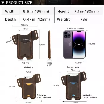 Leather Waist Cellphone Holster for iPhone 16 Pro Max